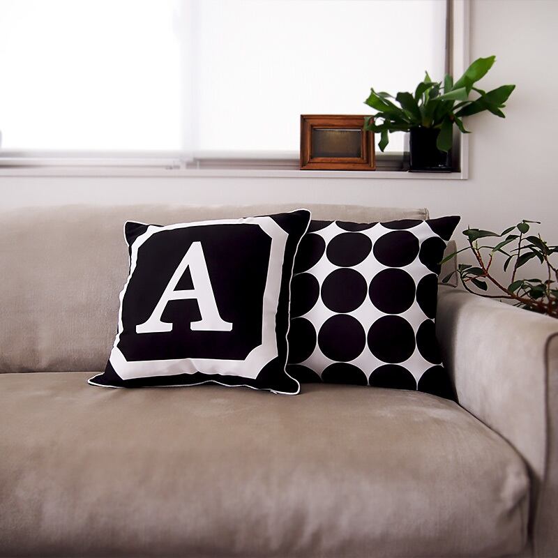 白黒を基調としたモダンでかっこいいモノトーン・クッションカバー♪