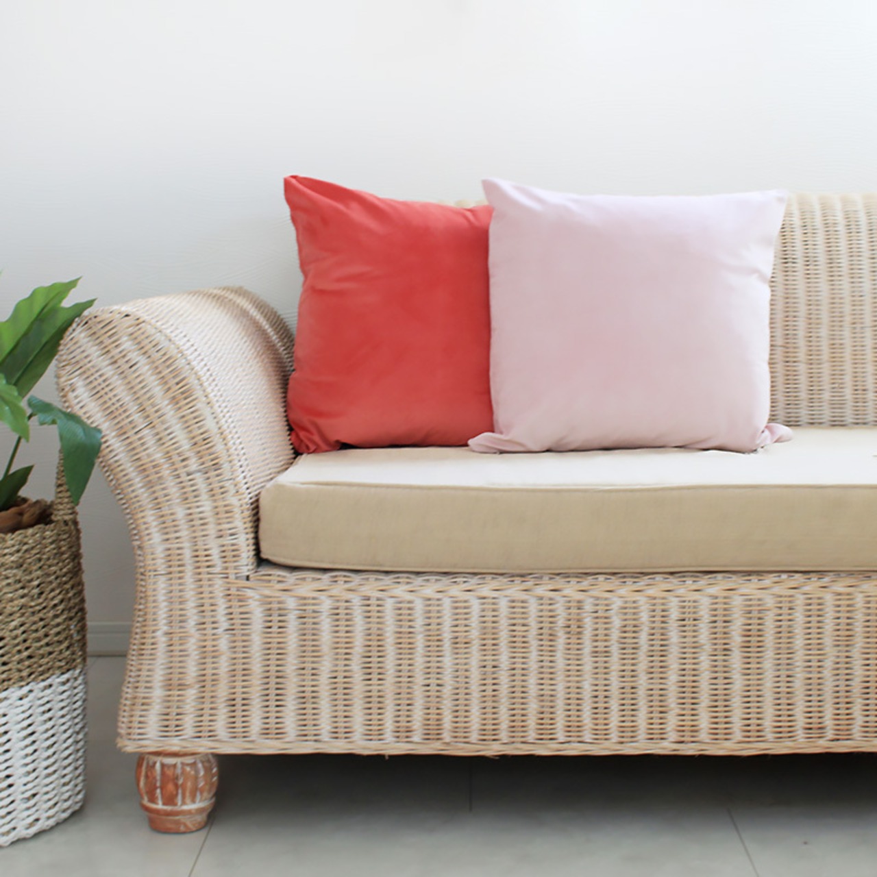 【2枚セット】ベロア クッションカバー ペールピンク&コーラルピンク
