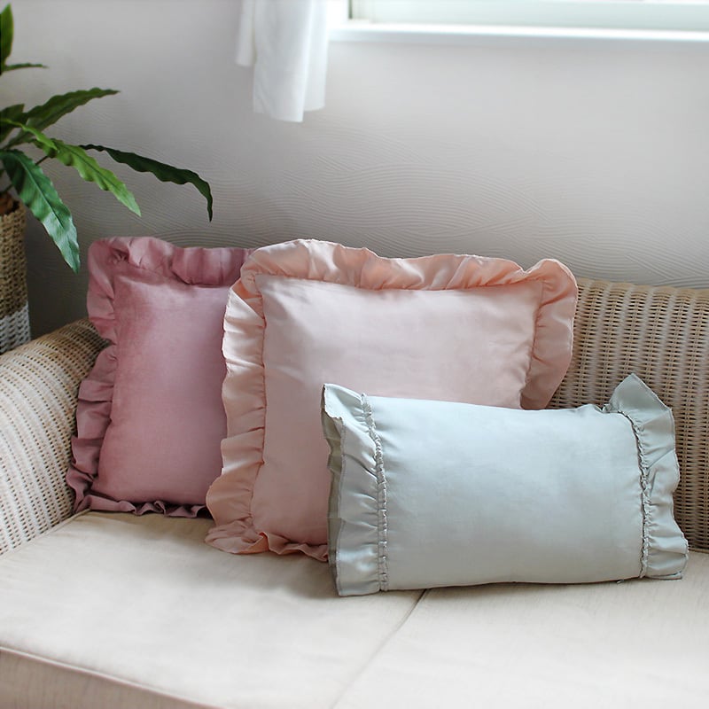 フリル クッションカバー サーモンピンク